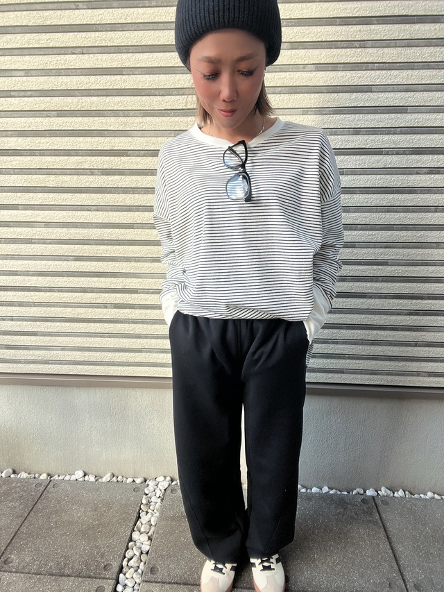 《素材》 cotton 《サイズ》 S ウエスト 平置き32〜36㎝ ヒップ50㎝ 股上37㎝ 股下67㎝ わたり32㎝ 裾幅21㎝ M ウエスト 平置き34〜38㎝ ヒップ52㎝ 前股上38㎝ 股下68㎝ わたり33センチ裾幅22㎝ L ウエスト 平置き36〜40㎝ ヒップ54㎝ 前股上39㎝ 股下68㎝ わたり34㎝ 裾幅23㎝